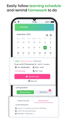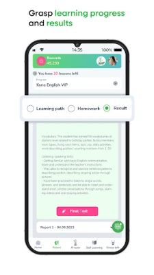 Cikin Kyna English, ana samun damar yin koyo mai inganci da mu'amala kai tsaye da malamai masu takaddun shaida na ƙasa da ƙasa. Manhajar tana sauƙaƙa wa masu koyo bin diddigin jadawalin karatu da ayyukan gida, tare da fahimtar ci gaban su da sakamakon su a fili. Rahotanni masu hoto dalla-dalla suna nuna ci gaba a kowace ƙwarewar turanci. Yana ba da damar haɗuwa da ƙungiyar tallafi a kowane lokaci, ko'ina, da kuma karɓar sanarwa daga Kyna English cikin sauƙi. Wannan tsari mai dacewa yana ba da damar yin karatu a duk lokacin da aka so kuma a duk inda aka so, yana gina tushe mai ƙarfi na turanci da haɓaka dukkan ƙwarewa gabaɗaya, wanda hakan zai inganta damar sadarwa da faɗaɗa hanyoyin aiki.