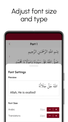 Domin tabbatar da cewa karatu ya kasance mai daɗi da annashuwa, Dalailal Khayrat tana ba da zaɓi daban-daban na gyaran rubutu. Za ka iya zaɓar nau'in rubutun Larabci da kake so, tare da ikon ƙara girman rubutun yadda kake buƙata, don dacewa da idonka. Akwai kuma zaɓin rubutu mai kauri, wanda ke ƙara fayyace kalmomi da sauƙaƙe karatu musamman ga waɗanda ke buƙatar hakan. Kuma a lokutan duhu, yanayin duhu (dark mode) zai taimaka maka karatu cikin kwanciyar hankali ba tare da gajiyar da idanu ba. Bugu da ƙari, manhajar tana da ingantaccen tsarin bincike na zamani, mai ikon nemo kalmomi cikin rubutun Larabci ko kuma cikin hafsawa, tare da damar ajiye alamomi (bookmarks) a ayoyin da ka so, don komawa gare su a kowane lokaci.