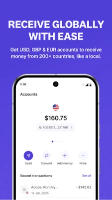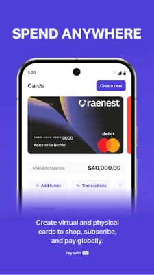 Tare da Raenest, buɗe asusun ajiyar duniya (USD, GBP, EUR) yana da sauƙi kuma ana yi shi cikin mintuna ba tare da buƙatar takarda ba. Wannan yana ba ku damar karɓar biyan kuɗi daga sama da ƙasashe 190, gami da abokan ciniki da iyalai a duk faɗin duniya. Za ku iya canza kuɗi nan take a farashin kasuwa na gaskiya, ba tare da ɓoyayyun kuɗaɗe ba, kuma ku riƙe su cikin amintattu. Bugu da ƙari, Raenest yana ba ku damar yin amfani da katinan USD na zahiri da na jiki waɗanda ke aiki a ko'ina, daga Google Ads zuwa Upwork, yana ba ku damar kashe kuɗi a duniya ba tare da iyakoki ba ko kuma abubuwan mamaki. Hakanan zaka iya tura kuɗi zuwa sama da ƙasashe 50 nan take da aminci, tare da kuɗaɗe masu araha da farashin musaya mai haske.