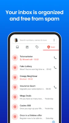 Truecaller yana tafiya fiye da ganewa kawai, yana ba ka kayan aiki masu ƙarfi don toshe kiraye-kiraye da saƙonnin SMS marasa so. Yana iya gane da kuma toshe masu tallace-tallace ta waya, masu yin kiran damfara, da sauran cutarwa kai tsaye. Tare da goyon bayan al'ummar masu amfani da Truecaller a duk duniya, ana sabunta bayanan masu aiko da saƙon banza a kai a kai, yana tabbatar da cewa kana samun kariya daga sabbin barazana. Haka kuma, Truecaller yana shirya saƙonninka zuwa nau'ikan sirri, sauran, da kuma saƙonnin banza, yana mai da abubuwa masu muhimmanci a bayyane. Zaka iya amfani da saƙonnin walƙiya don isar da saƙonni masu gaggawa ko kuma yin hira kyauta da masoyanka.